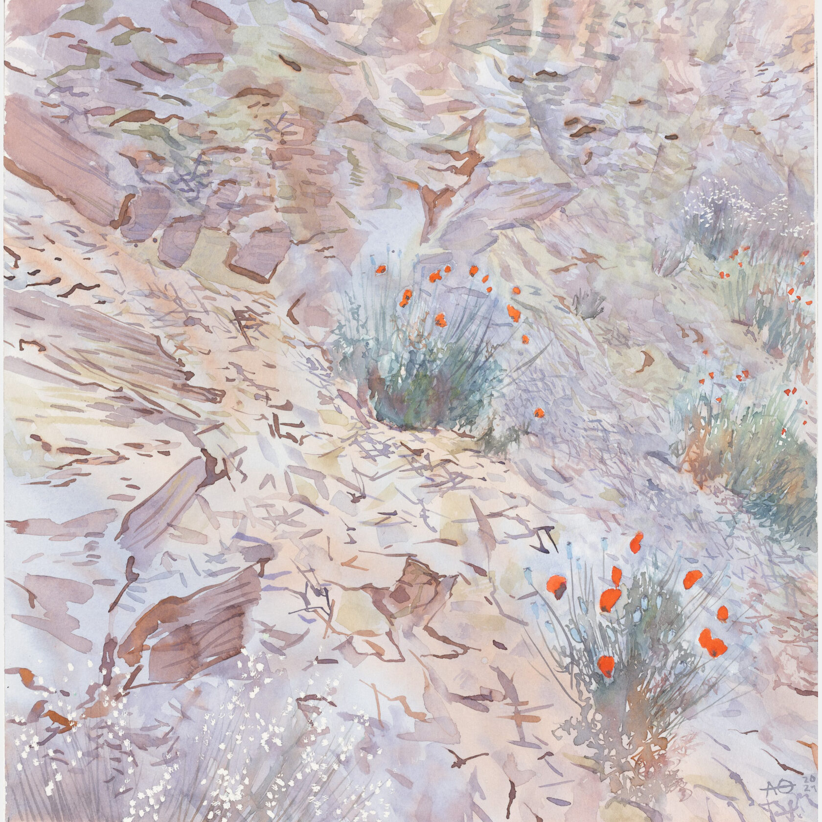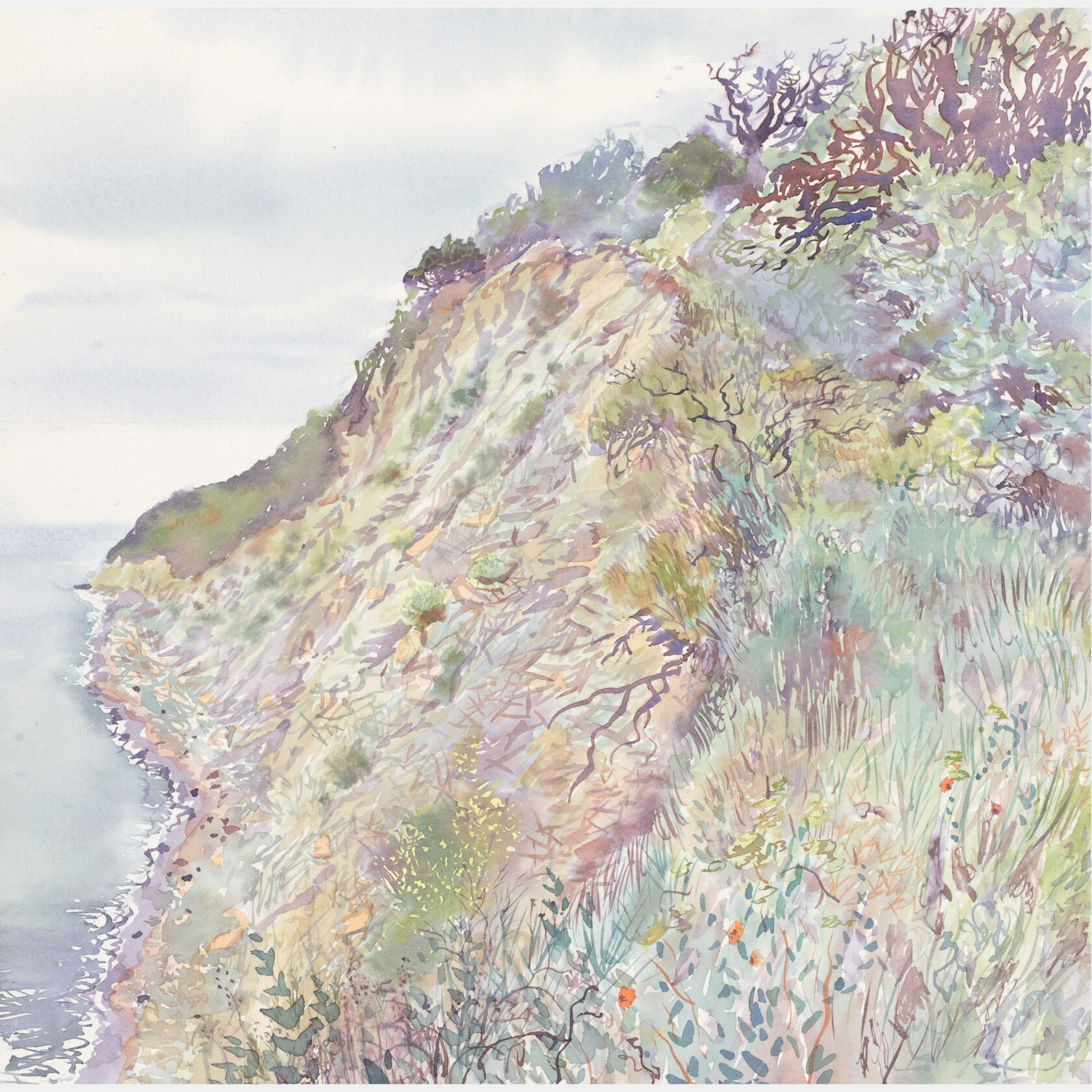К обрыву над морем с гор спускаются древние можжевельники и фисташки. Эти мощные деревья — не то, что наши нежные березки, — в них столько бурной страсти, грубой силы! В своём древнем танце они подходят к обрыву всё ближе, нависают над ним, спуская в пустоту извилистые корни, и, наконец, срываются вниз вместе с краем берега. Волны веками носят их по своим просторам, и потом выбрасывают выбеленные, отшлифованные стволы на гальку узкой прибрежной полосы, где они лежат в лунном свете, подобные гигантским хатифнаттам, и снятся им алые огоньки растрепанных маков на золотых камнях.